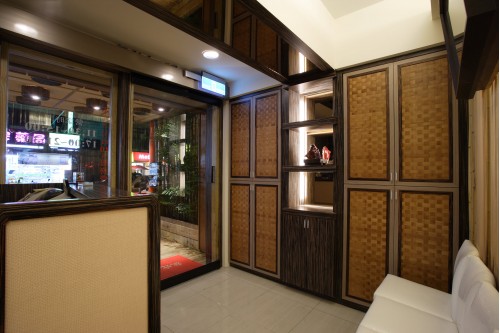 木皮塗裝板、竹片飾板、耐火板、南方松、琥珀鏡、編織木皮、孟竹、日式仿古銅鋼瓦、金色線簾、竹編捲簾